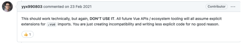 이부분이 가장 걸렸던거 같아요. vite에서는 이제 extension을 직접 입력하는 방식으로 변경이 됩니다. .js외의 모든 파일들을 import 할때 이제 extension을 붙여 줘야합니다. (ex> .vue)